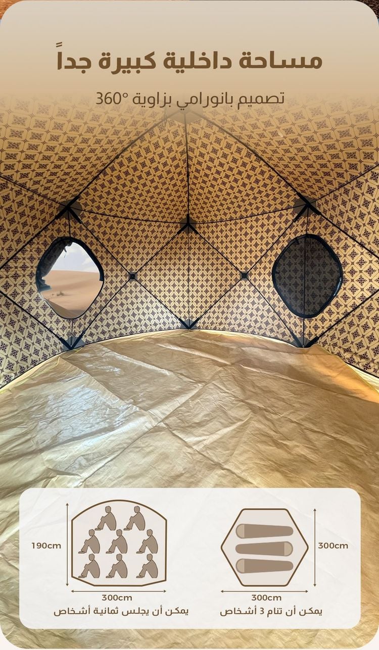 - تهوية جيدة مع نوافذ قابلة للإغلاق لتوفير الراحة داخل الخيمة