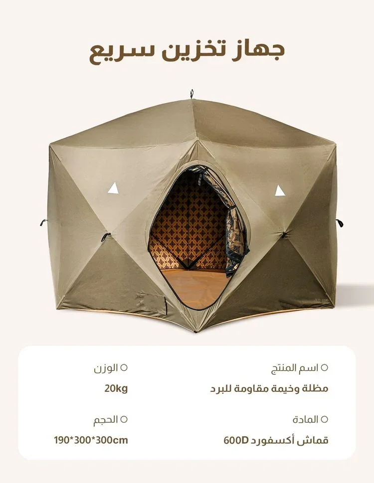 تمتع بالدفء والحماية خلال فصل الشتاء مع الخيمة الشتوية المقاومة للرياح والعوامل الجوية. مصممة بجودة عالية لتوفر عزلًا مثاليًا من البرد والمطر، مما يجعلها خيارًا مثاليًا للتخييم، الرحلات البرية، أو حتى الاسترخاء في الحديقة. سهلة التركيب وخفيفة الوزن، مما يتيح لك التنقل بها بسهولة أينما ذهبت. استمتع بتجربة تخييم مريحة ودافئة مع هذه الخيمة المصممة لتحمل أقسى الظروف الجوية.